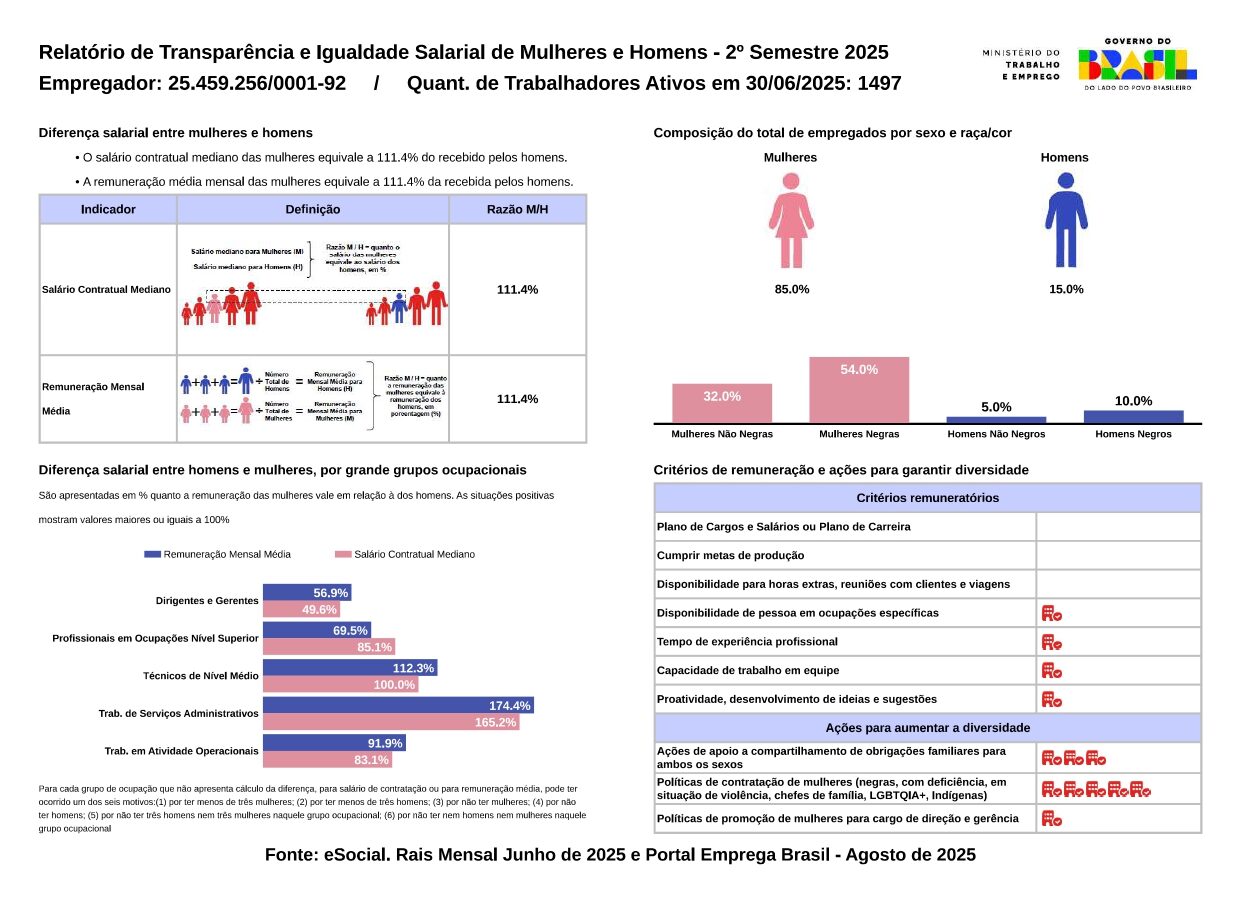 O Ministério do Trabalho e Emprego (MTE) avisa que as empresas com 100 ou mais empregados têm até o dia 31 de março para divulgar o Relatório de Transparência Salarial e Critérios Remuneratórios.